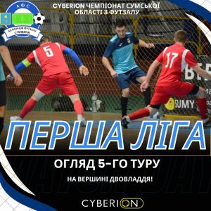 Двовладдя на вершині. Нічия в центральному матчі вік-енду, та перфоманс від Назарія Гурба за СК Конотоп. До вашої уваги огляд пʼятого туру Cyberion чемпіонату Сумської області з футзалу.