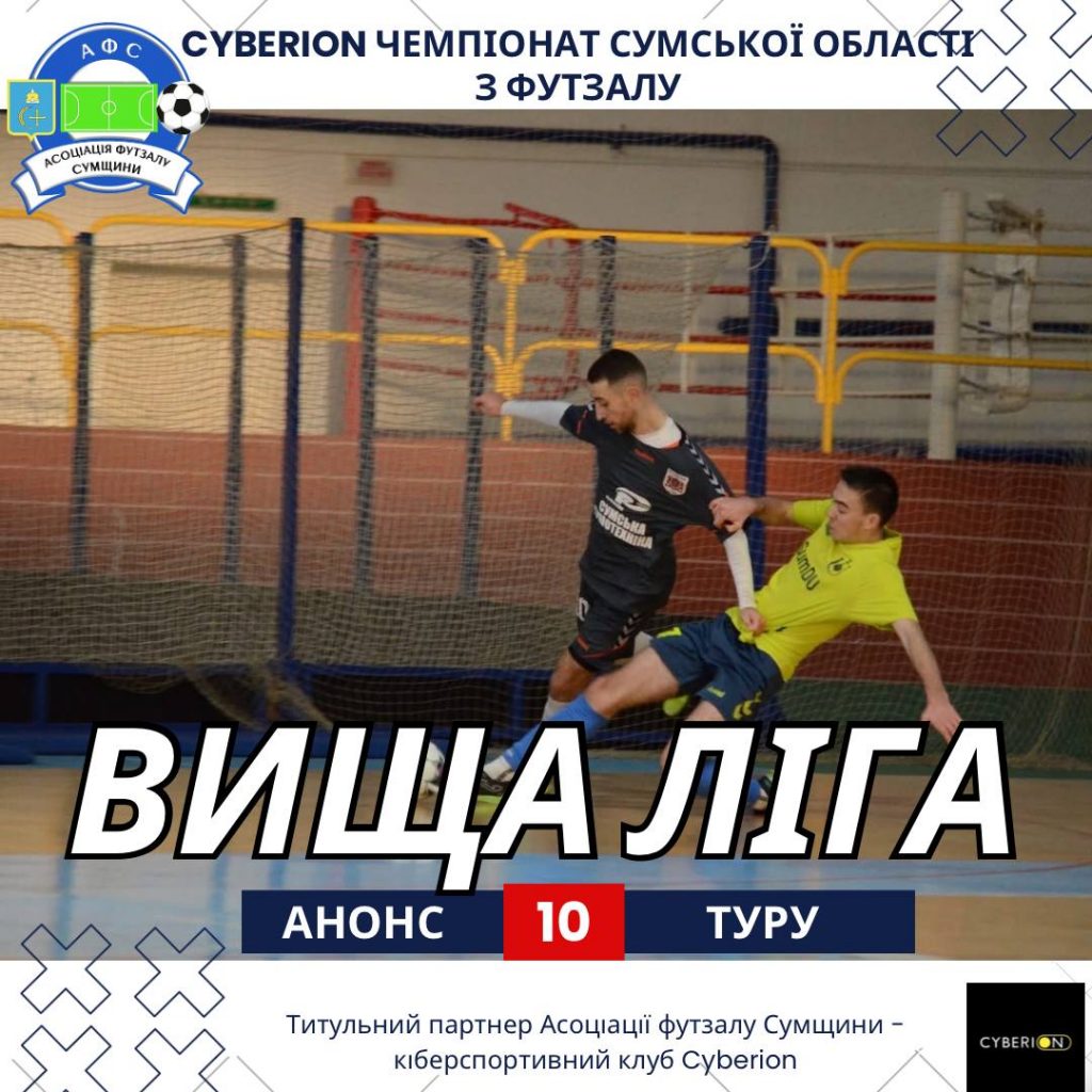Анонс десятого туру Вищої ліги Cyberion чемпіонату Сумської області з футзалу