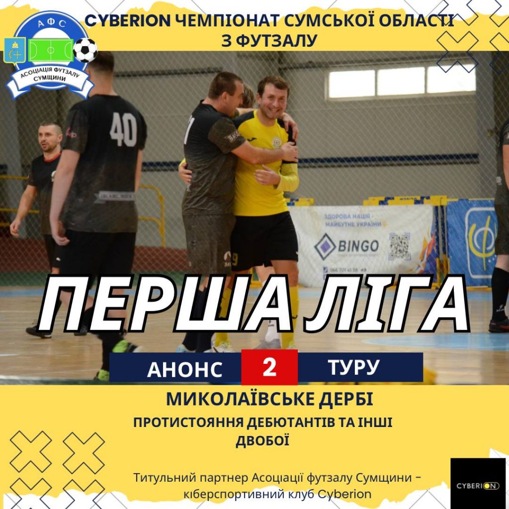 Анонс другого туру Першої ліги Cyberion чемпіонату Сумської області з футзалу