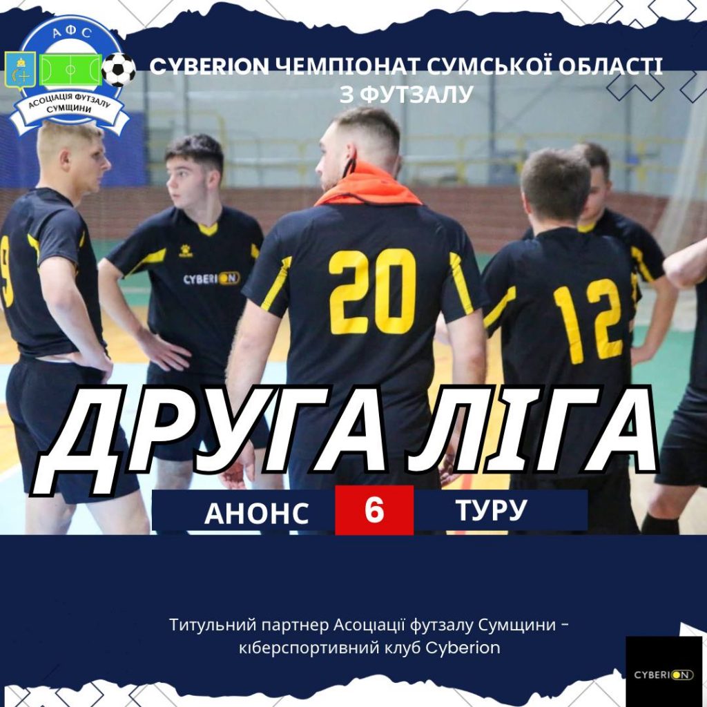 Анонс шостого туру Другої ліги Cyberion чемпіонату Сумської області з футзалу