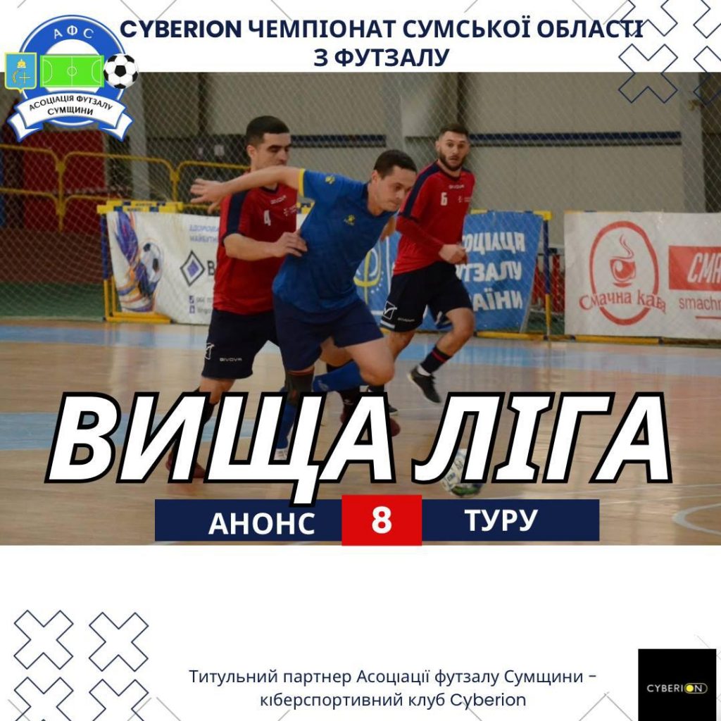 Анонс восьмого туру Вищої ліги Cyberion чемпіонату Сумської області з футзалу