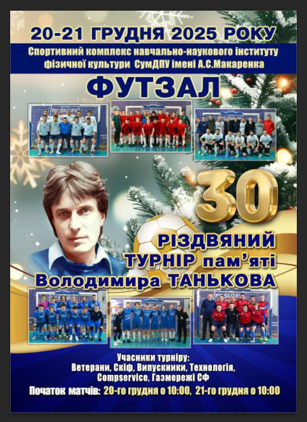 Цими вихідними, 20 та 21 грудня, відбудеться ювілейний 30-й різдвяний турнір присвячений памʼяті Володимира Костянтиновича Танькова
